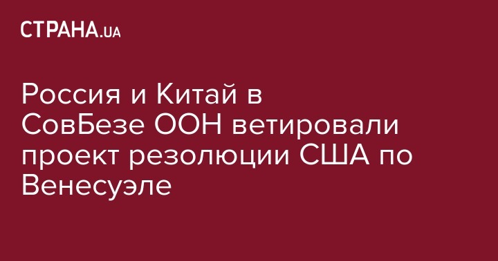 В четверг, 28 февраля, Россия и КНР на заседании СБ ООН применили право вето во время голосования по американскому проекту резолюции по Венесуэле, сообщает "Интерфакс-Украина".