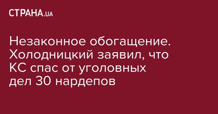 Вчера, 28 февраля, глава Специализированной антикоррупционной прокуратуры (САП) Назар Холодницкий публично заявил, что примерно 30 нардепов могли стать фигурантами уголовных дел по поводу незаконного обогащения, но это стало невозможно, поскольку Конституционный суд отменил статью 368-2 Уголовного кодекса.