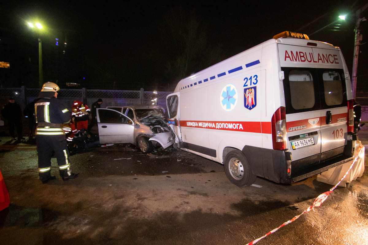 Поздним вечером в четверг, 28 февраля, в Киеве на выезде с моста Метро столкнулись ZAZ Vido и карета скорой помощи Peugeot Boxer. Авария произошла около 23:30 на Броварском проспекте.