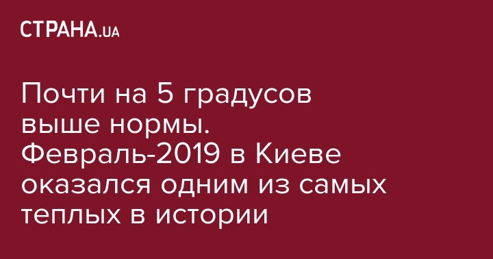 в Киеве февраль 2019 года вошел в десятку самых теплых за 139 лет наблюдения в столице. Самым теплым был последний день зимы, когда температура поднялась до 11,2 градуса тепла. Об этом свидетельствуют данные Центральной геофизической обсерватории имени Бориса Срезневского.