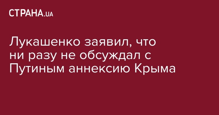 Глава Белоруссии Александр Лукашенко заявил, что не обсуждал с президентом РФ Владимиром Путиным вопрос признания российской территории аннексированного Крыма. Соответствующее заявление он сделал во время встречи со СМИ и представителями общественности, информирует белорусское отделение "Интерфакс".
