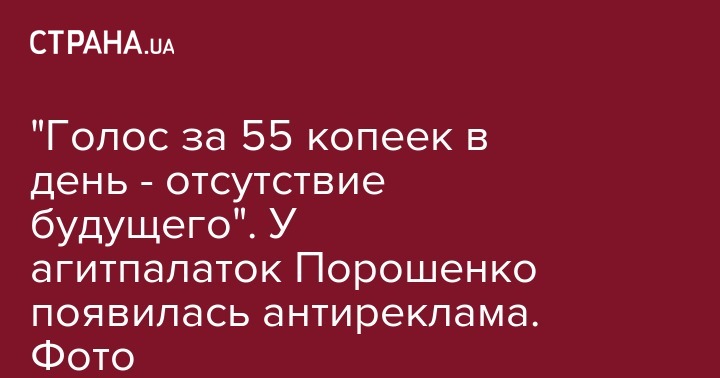 "Голос за 55 копеек в день - отсутствие будущего". У агитпалаток Порошенко появилась антиреклама. Фото