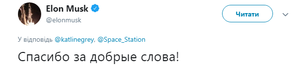 Таким образом Маск ответил на сообщение в социальной сети от девушки, которая решила поздравить его от имени космических энтузиастов России.