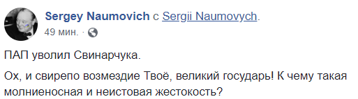 Блогер Сергей Наумович перефразировал знаменитый французский лозунг и написал "Je Suis Svinarchuk!" (Я – Свинарчук). Видимо, предугадывая реакцию "порохоботов".
