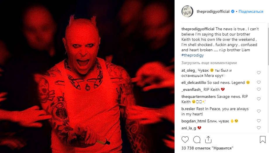 "Умер вокалист The Prodigy Кейт Флинт. Ему было 49 лет.