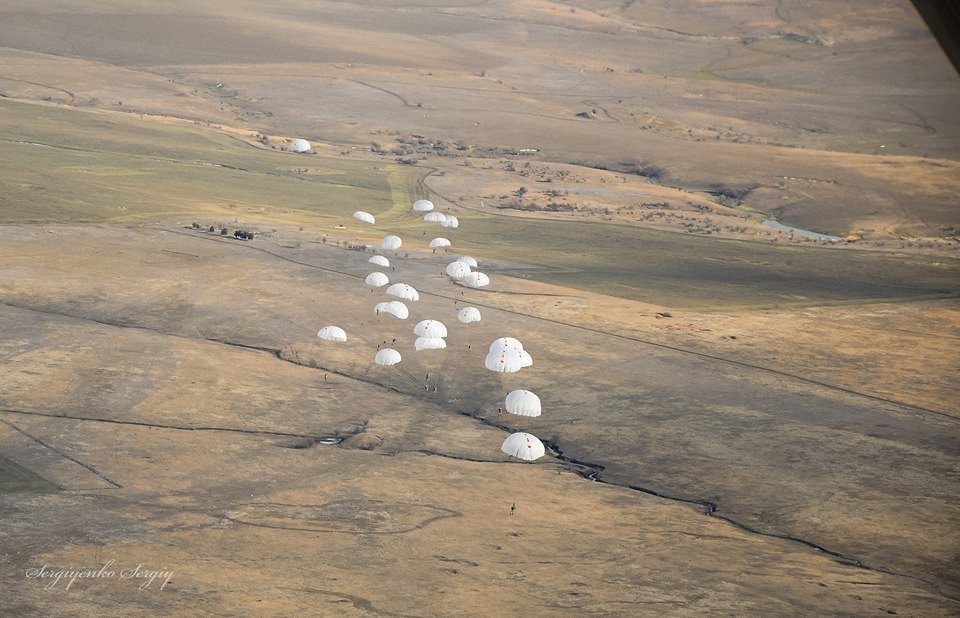 Над Терновском полигоном в Николаевской области бойцы бригады морской пехоты Военно-морских сил ВС Украины осуществили очередное десантирование сразу из двух транспортных самолетов типа АН-26. Об этом сообщает 36-я отдельная бригада морской пехоты на своей странице в Facebook.