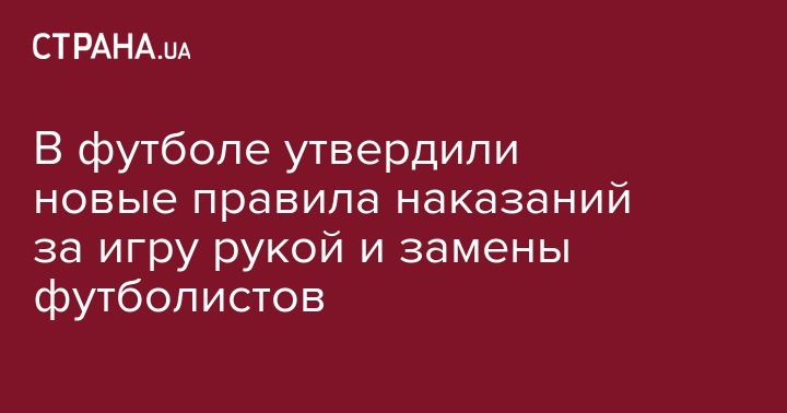 Международная федерация футбола (ФИФА) на собрании IFAB (Международный совет футбольных ассоциаций) одобрила введение новых правил в футболе. Изменения касаются игры рукой, проведение замен и штрафных ударов, передает theifab.com.