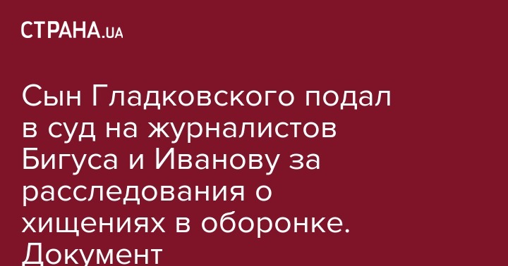 Сын Гладковского подал в суд на журналистов Бигуса и Иванову за расследования о хищениях в оборонке. Документ