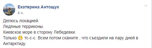 "Делюсь локацией. Ледяные терриконы. Киевское море в сторону Лебедевки. Только тс-с-с. Всем потом скажете, что съездили на пару дней в Антарктиду", - сказано в сообщении. Также опубликованы фотографии удивительной локации.