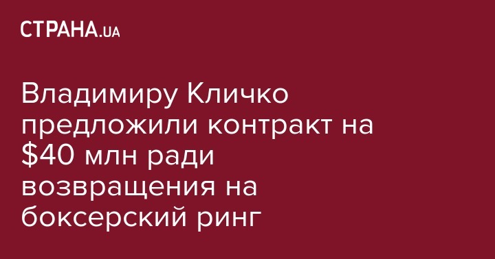 Владимиру Кличко предложили контракт на $40 млн ради возвращения на боксерский ринг