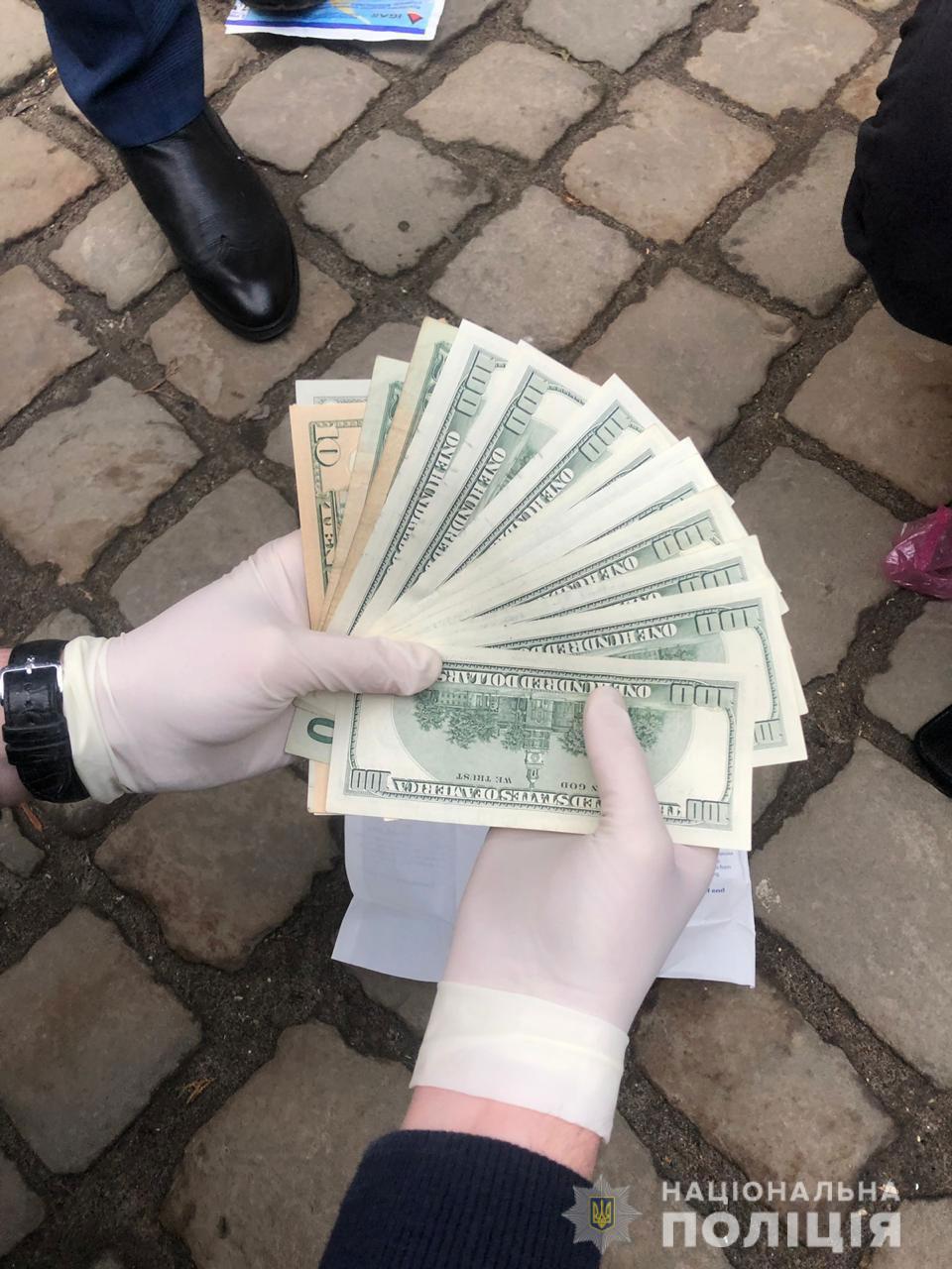 "Средства, полученные в качестве неправомерной выгоды, были изъяты из кармана куртки правонарушителя", - сообщает департамент защиты экономики Национальной полиции Украины.