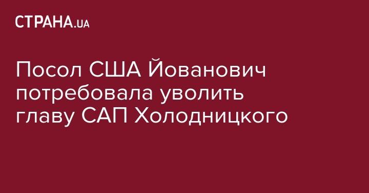 Американский посол в Украине Мари Йованович заявила о необходимости уволить с должности главу Специализированной антикоррупционной прокуратуры (САП) Назара Холодницкого. Об этом сообщается на сайте посольства США в Украине.