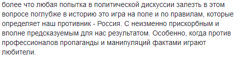 "Забаненный" послом историк опубликовал еще одну запись в своем блоге, выразив недоумение в связи со склонностью украинских политиков и дипломатов к "историческим разысканиям". По его мнению, перевод дискуссии о Крыме в историческую плоскость означает игру по правилам России "с вполне предсказуемым для Украины результатом".