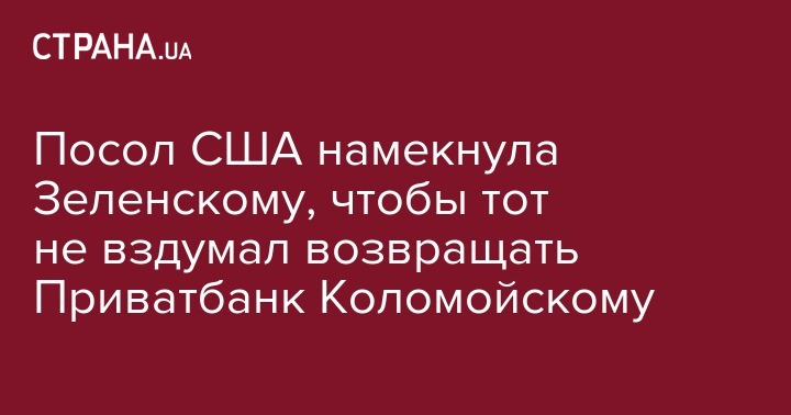 Посол США намекнула Зеленскому, чтобы тот не вздумал возвращать Приватбанк Коломойскому