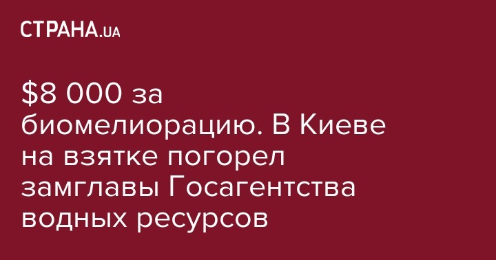 $8 000 за биомелиорацию. В Киеве на взятке погорел замглавы Госагентства водных ресурсов