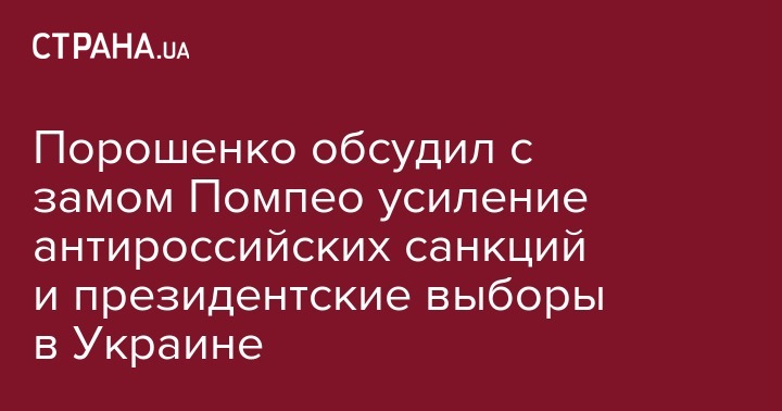 Порошенко обсудил с замом Помпео усиление антироссийских санкций и президентские выборы в Украине
