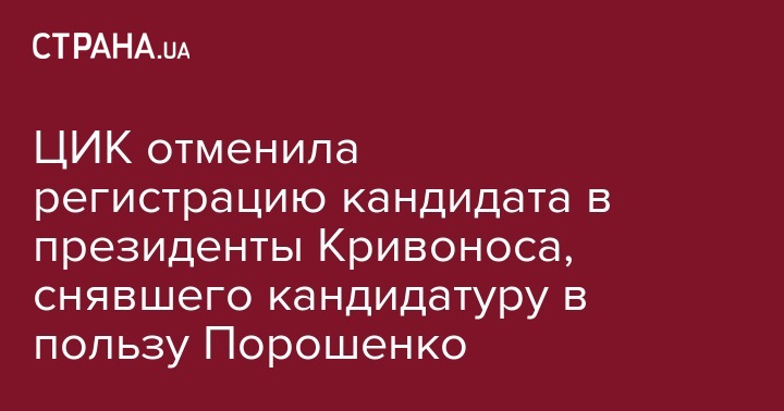 ЦИК отменила регистрацию кандидата в президенты Кривоноса, снявшего кандидатуру в пользу Порошенко