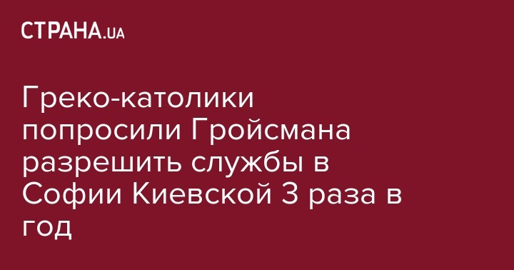 Глава Украинской греко-католической церкви (УГКЦ) Верховный архиепископ Киево-Галицкий Святослав обратился к премьеру Украины Владимиру Гройсману с просьбой предоставить разрешение на проведение церковных служб УГКЦ 3 раза в год в Софийском соборе Киева.