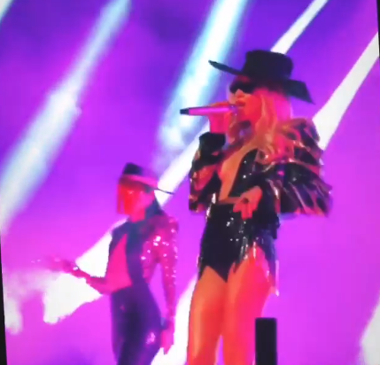 Светлана Лобода выходила на сцену в очень откровенных нарядах, обнажающих ее грудь и ноги. Один из ее нарядов представлял собой блестящий боди с глубоким декольте - до самого пояса. Также звезда выходила на сцену в обтягивающем комбинезоне, верх которого едва удерживал бюст.