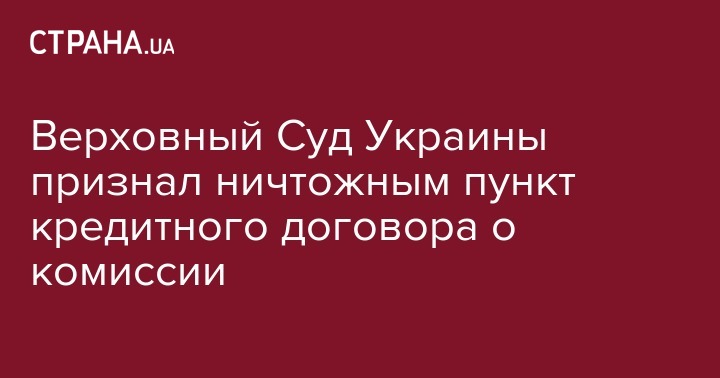Верховный Суд Украины признал ничтожным пункт кредитного договора о комиссии
