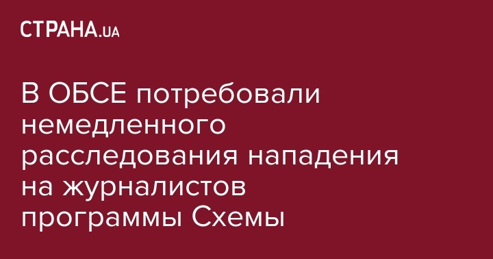 "Я осуждаю вчерашнее нападение на журналистов программы расследований "Схемы" на Киевщине и призываю власти в Украине немедленно расследовать инцидент. Насилие в отношении журналистов является неприемлемым и должно преследоваться по всей строгости закона", - подчеркнул Дезир.