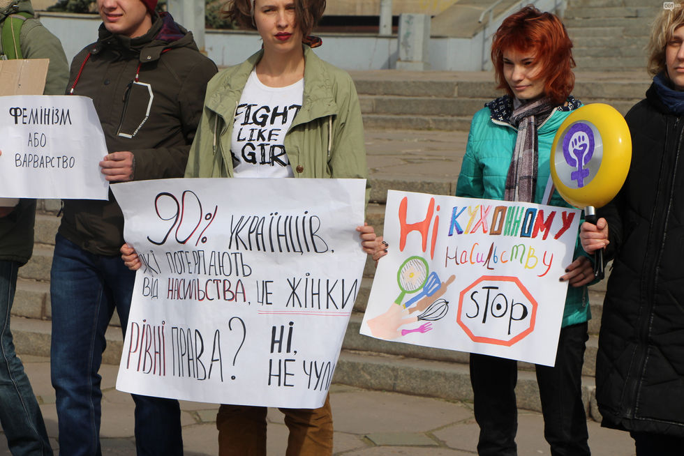 В пятницу, 8 марта, в Международный женский день в региона Украины прошли марши за права женщин. Так, в Запорожье активистки устроили акцию под девизом "Женщина – не кухонный комбайн". Митинги прошли также во Львове и Херсоне, а в Харькове марш за права женщин прошел в сопровождении контрмарша националистов. "Страна" узнала, как это было.