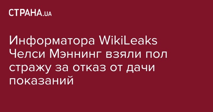 Суд в США арестовал информатора WikiLeaks Челси Мэннинг, так как она отказалась давать показания большому жюри по расследованию, посвященному данной организации, передает Associated Press.