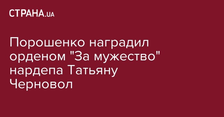 Народный депутат Татьяна Черновол награждена президентом Украины Петром Порошенко орденом "За мужество" ІІІ степени. Об этом говорится в указе президента №58/2019 от 6 марта о вручении государственных наград по случаю Международного женского дня.