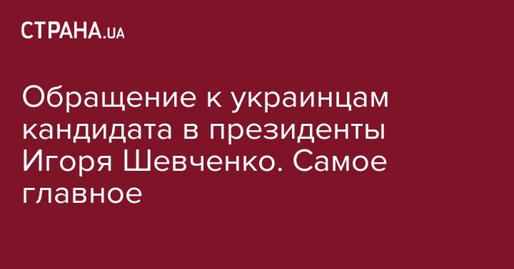 Обращение к украинцам кандидата в президенты Игоря Шевченко. Самое главное