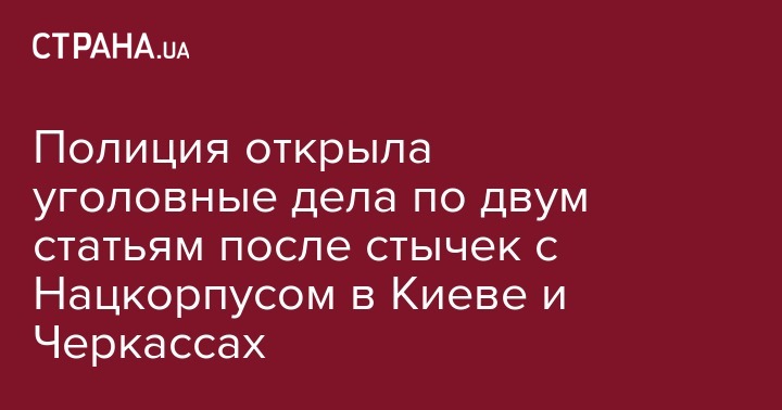 Полиция возбудила уголовное производство против членов "Национального корпуса" и "Национальных дружин", устроивших 9 марта  столкновения с правоохранителями в Киеве и Черкассах. Об этом сообщает пресс-служба Нацполиции.