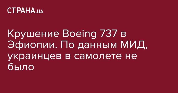 "По предварительной информации авиакомпании Ethiopian Airlines, граждане Украины не были пассажирами самолета, потерпевшего катастрофу в Эфиопии", - говорится в сообщении консульской службы.