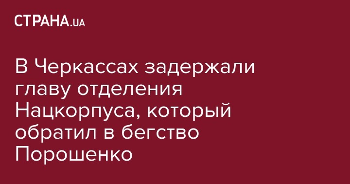 "Задержали Дмитрия Кухарчука и представителей Черкасского отделения Национального Корпуса. Задержание происходило с оружием, без объявления обвинений и с применением силы. Сейчас дома у наших активистов проходят обыски. Воспринимаем это как начало политических репрессий и месть Порошенко за срыв его выступления. Просим жителей Черкасс следить за нашими эфирами и быть готовыми мобилизоваться на помощь собратьям", - говорится в сообщении Нацкорпуса в Facebook.