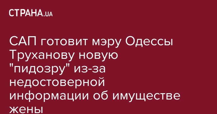 САП готовит мэру Одессы Труханову новую "пидозру" из-за недостоверной информации об имуществе жены
