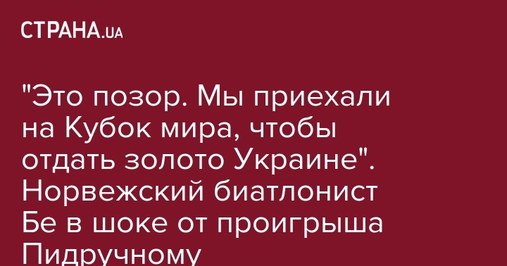 "Это позор. Мы приехали на Кубок мира, чтобы отдать золото Украине". Норвежский биатлонист Бе в шоке от проигрыша Пидручному