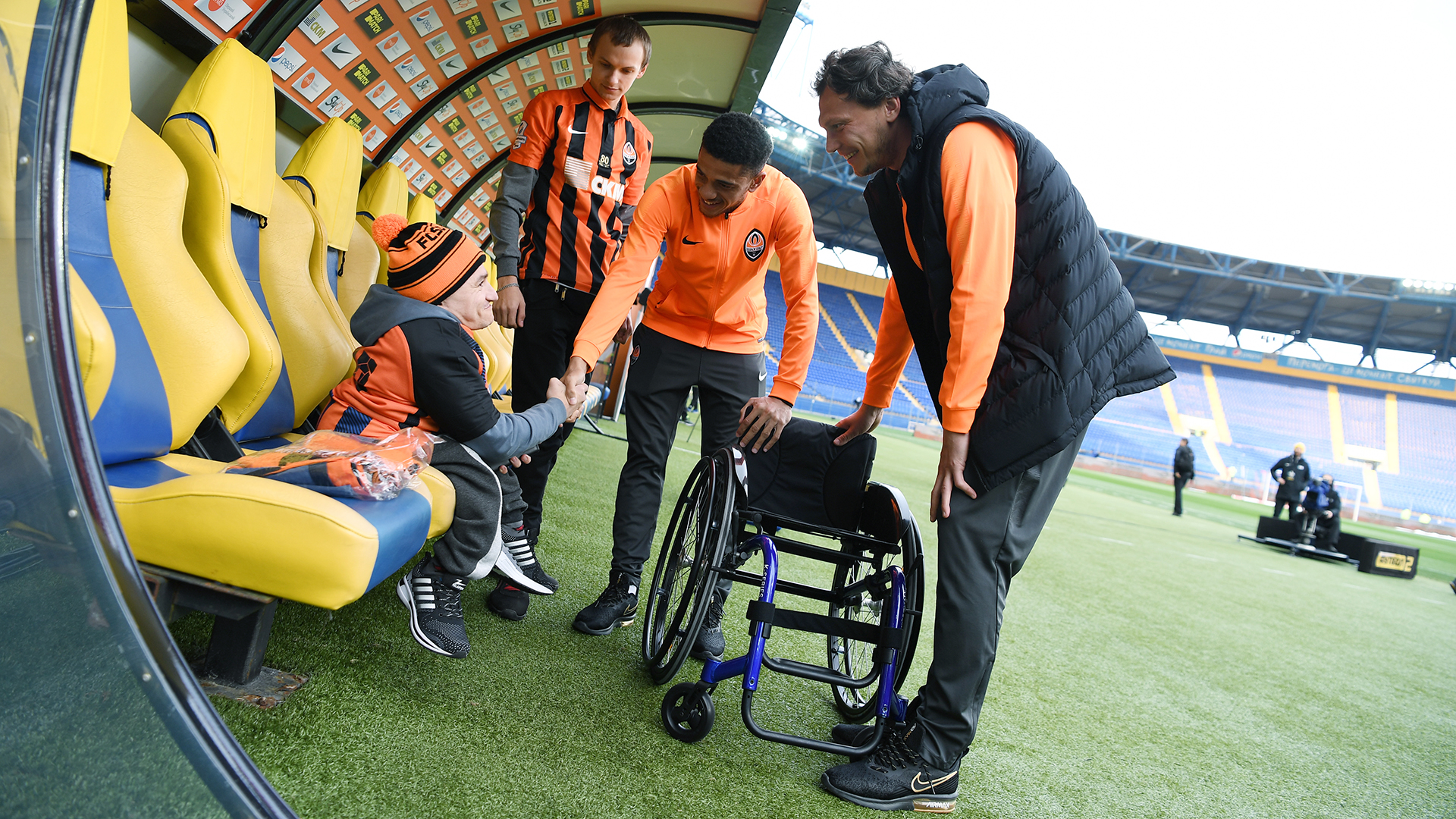 Перед игрой с Карпатами вратарь "горняков" Андрей Пятов и капитан Тайсон сразу по приезде на стадион отправились к полю, где встретились с болельщиком и от имени всей команды вручили ему подарок - универсальную инвалидную коляску, передает пресс-служба нашего клуба.