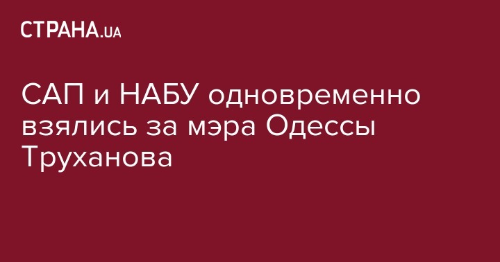 Как сообщала "Страна", САП готовит мэру Одессы Труханову новую "пидозру" из-за недостоверной информации об имуществе жены. Недавно НАБУ закрыло дело против Труханова о незаконном обогащении, но теперь САП собирается снова вручить ему сообщение о подозрении в декларировании недостоверной информации.