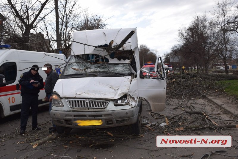 В Николаеве на пересечении ул.Пограничная и ул.Садовая дерево упало на маршрутку, в которой находились около 15 человек. В результате двух несовершеннолетних и одного мужчину госпитализировали.