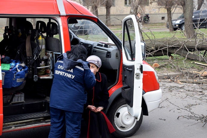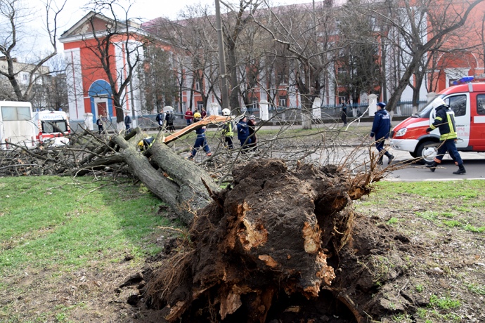 Ураган в Украине. В Николаеве на полную людей маршрутку упало дерево