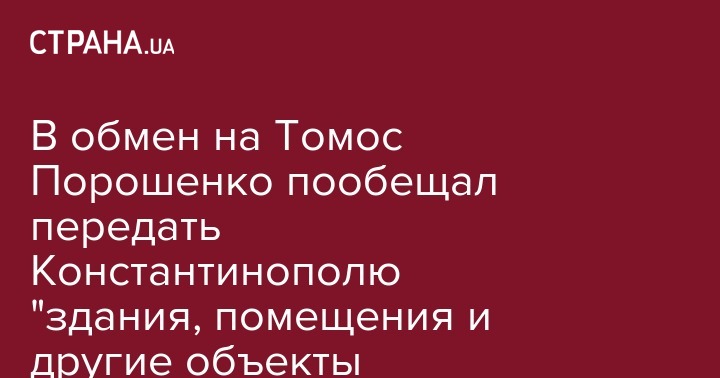 Президент Украины Петр Порошенко, подписав 3 ноября 2018 года в Стамбуле соглашение о сотрудничестве между Украиной и Вселенским Константинопольским патриархатом, в обмен на Томос об автокефалии обязался передать Ставропигии Вселенского патриархата в Украине "здания и помещения, а также другие объекты собственности".