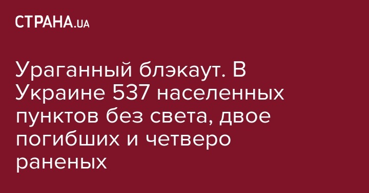 Из-за сильнейшего шквального ветра в понедельник, 11 марта, в Украине были обесточены 537 населенных пунктов. Об этом сообщает Государственная служба по чрезвычайным ситуациям.