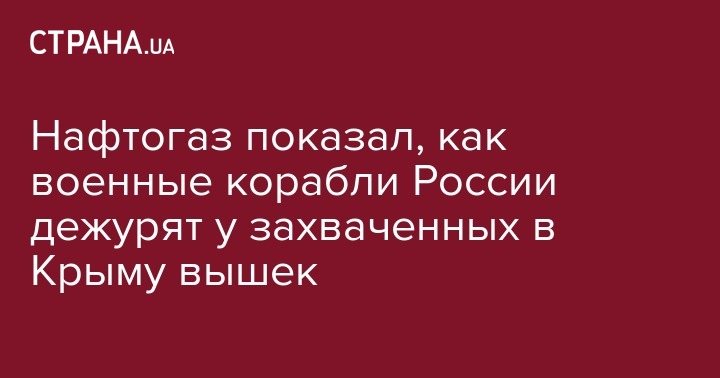 НАК "Нафтогаз Украины" опубликовал в своем Twitter снимки, на которых запечатлено, как российские военные корабли охраняют захваченные объекты компании.