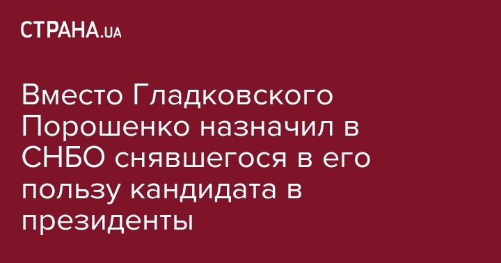 Вместо Гладковского Порошенко назначил в СНБО снявшегося в его пользу кандидата в президенты