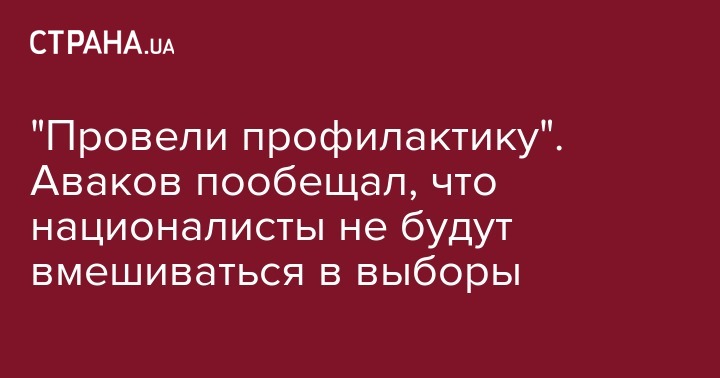 "Ни одно образование, ни одна общественная организация (ни "Нацдружины", ни "Нацкорпус", ни интернациональные интернационалисты) не будут иметь права силовым образом вмешиваться в избирательный процесс. У нас есть достаточно сил. После соответствующего заявления представителя Нацдружин, мы, реагируя на обращение главы ЦВК в том числе, провели профилактику этой ситуации. Есть у нас некоторое убеждение, что никто из тех, кто красиво заявляет, не пойдет на прямой конфликт с властью", - заявил Аваков.