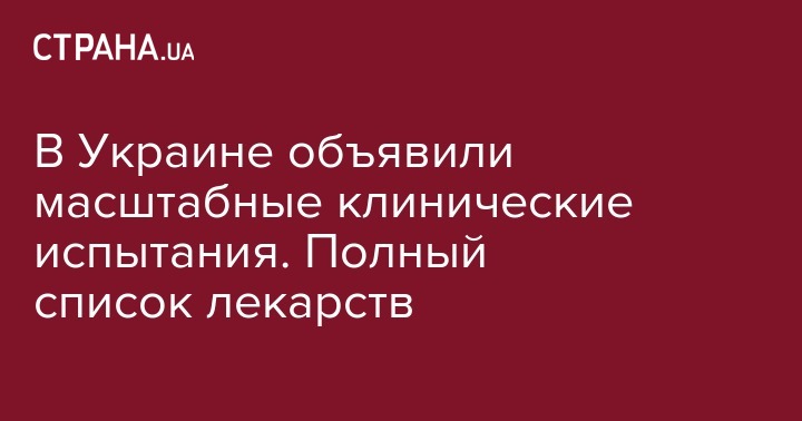 В Министерстве здравоохранения Украины 7 марта объявили о проведении масштабных клинических испытаний лекарственных средств. Об этом говорится в приложении к приказу на сайте Минздрава.