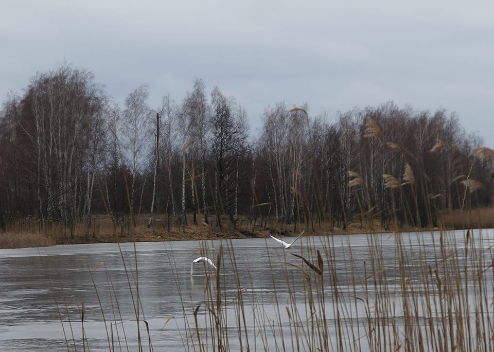 В соцсети появились фотографии, как белые лебеди пролетают над самым загрязненным в зоне отчуждения озером. Об этом рассказывает пресс-служба Чернобыльского радиационно-экологического биосферного заповедника в Facebook.