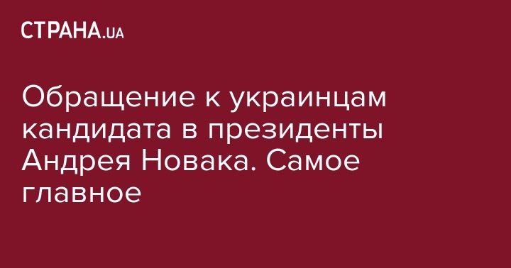 Обращение к украинцам кандидата в президенты Андрея Новака. Самое главное