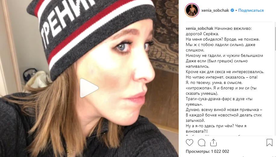 После этого на странице Собчак появился пост о том, что "у карликовых умов есть отвратительнейшая привычка приписывать свою мелочность другим". А умный человек даже за глупостью ищет мудрость. Именно об этом необъявленном противостоянии и написали СМИ, на что отреагировал Шнуров.