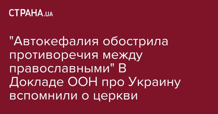 "Автокефалия обострила противоречия между православными" В Докладе ООН про Украину вспомнили о церкви