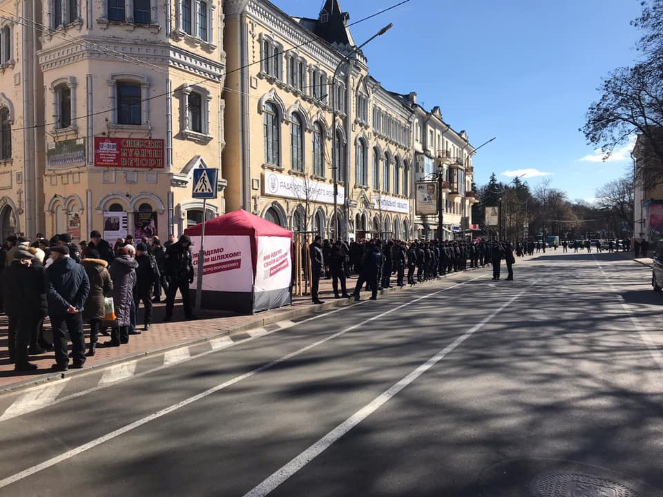 В Чернигове эта тенденция только усугубилась. Весь центр города был перекрыт полицейскими. На некоторые улицы не пускали даже жителей города, которые работают в местных офисах. Это было масштабно даже по сравнению с Житомиром – где президенту пришлось перекрыть всю центральную площадь ради "общения с народом".