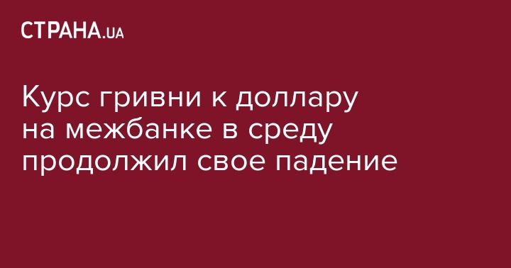 Курс гривни к доллару на межбанке в среду продолжил свое падение